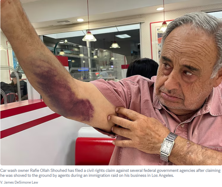 “This was an outrageous and unlawful assault on a 79-year-old American citizen in his own place of business,” V. James DeSimone, Shouhed’s attorney said in a press release. “If this can happen in broad daylight to an American senior citizen who committed no crime, it can happen to anyone.”